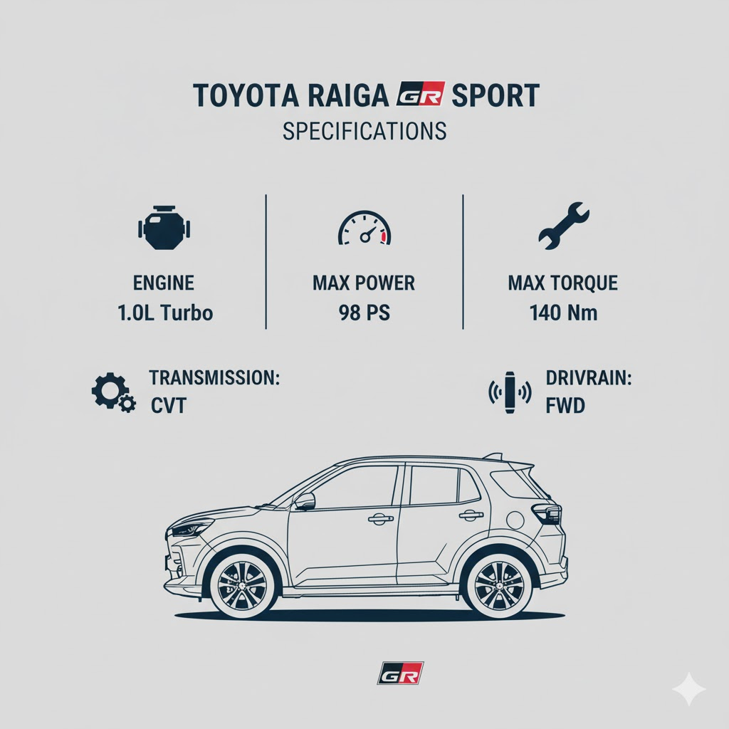 Dengan mesin 1.0L turbo, Raize GR Sport mampu menempuh jarak hingga 17–18 km/liter di jalur kombinasi kota dan tol.