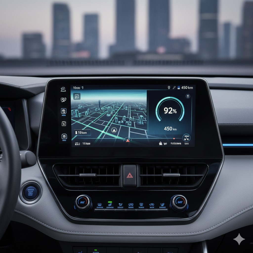 bZ4X Battery EV dibekali sistem infotainment canggih dengan layar sentuh besar yang menjadi pusat kendali kendaraan. Sistem ini mendukung konektivitas smartphone, navigasi berbasis EV, serta informasi penggunaan energi secara real-time.