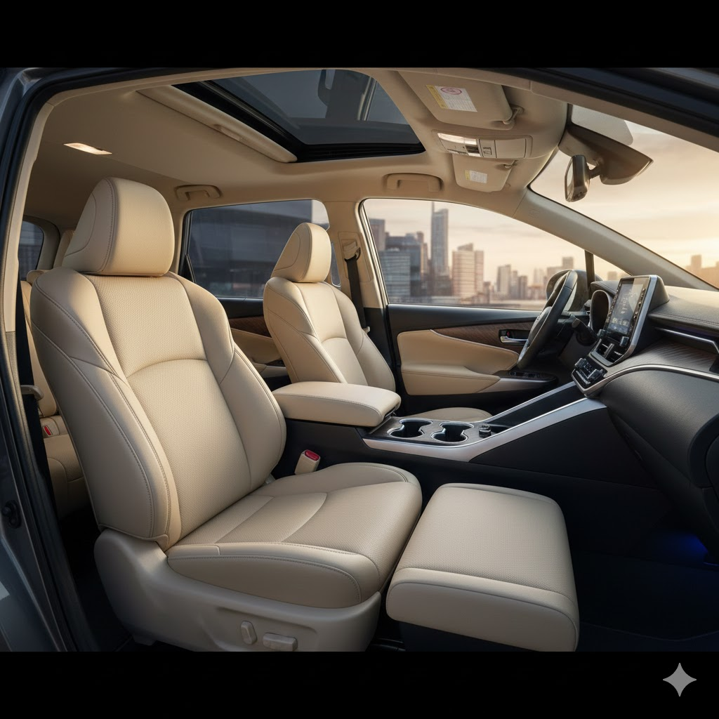 Ruang kaki dan kepala sangat lega di setiap baris kursi, menjadikannya ideal untuk keluarga. Kursi dirancang ergonomis untuk menunjang kenyamanan perjalanan panjang. MPV ini benar-benar dirancang sebagai kendaraan keluarga yang mengutamakan kenyamanan seluruh penumpang.
